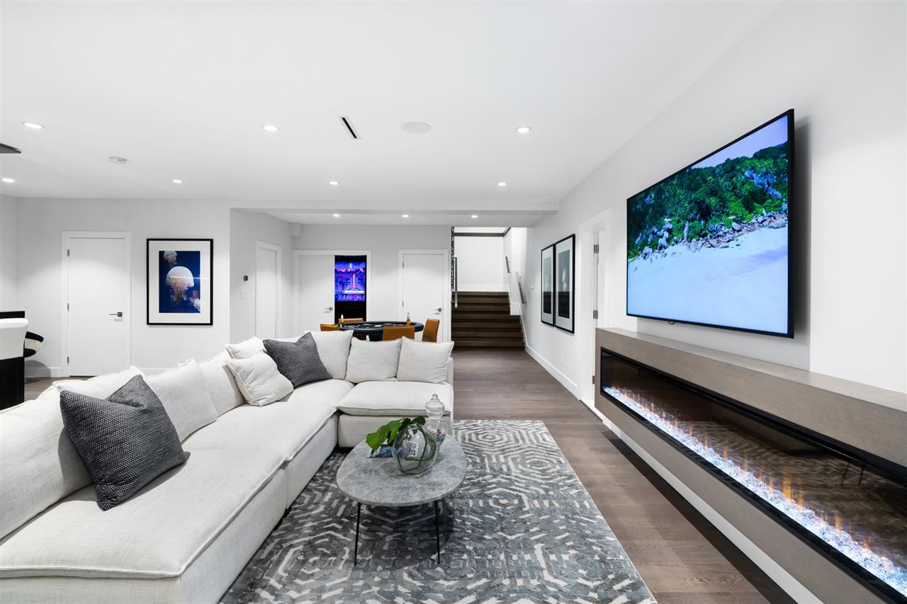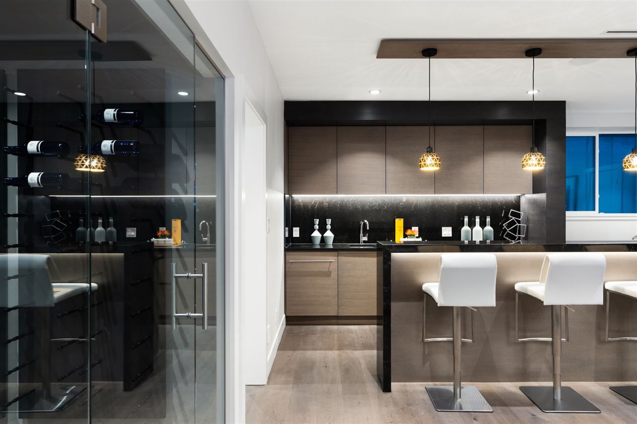 The main level features open living areas, a gourmet kitchen, and a large covered deck. The upper level has 4 bedrooms including an impressive master suite. The lower level includes a theatre room, rec room, bar, wine room, gym, sauna, steam room, guest bedroom, and a 2-bed, 2-bath suite. Other features include a backup generator, radiant heat, HRV, and AC. Unbeatable location.